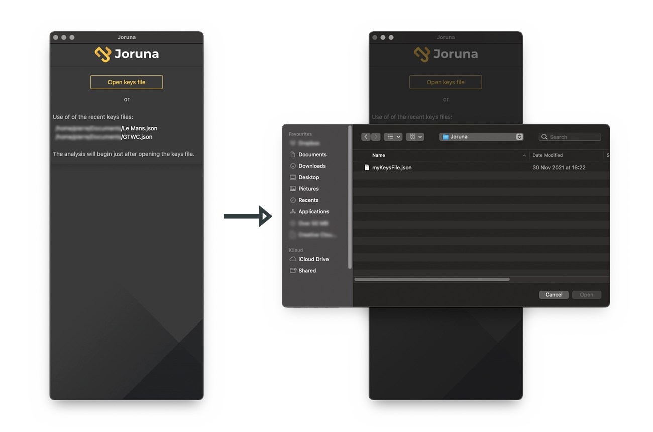 In the menu bar click on Library > External module - Extras > Joruna - Start analysis from selection,