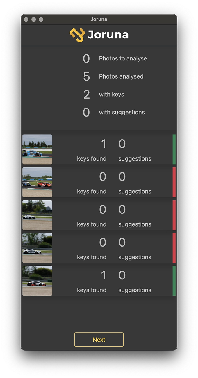 Select the photos your want Joruna to analyse. You can use your usual combinations of star rating, color tags, etc,